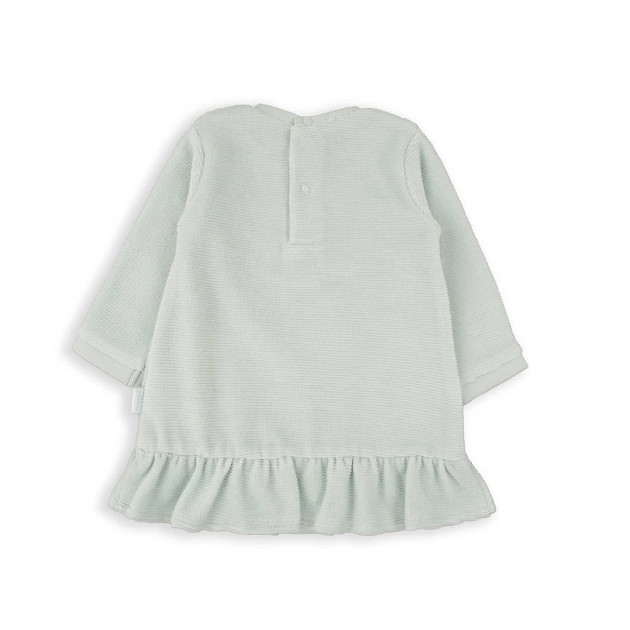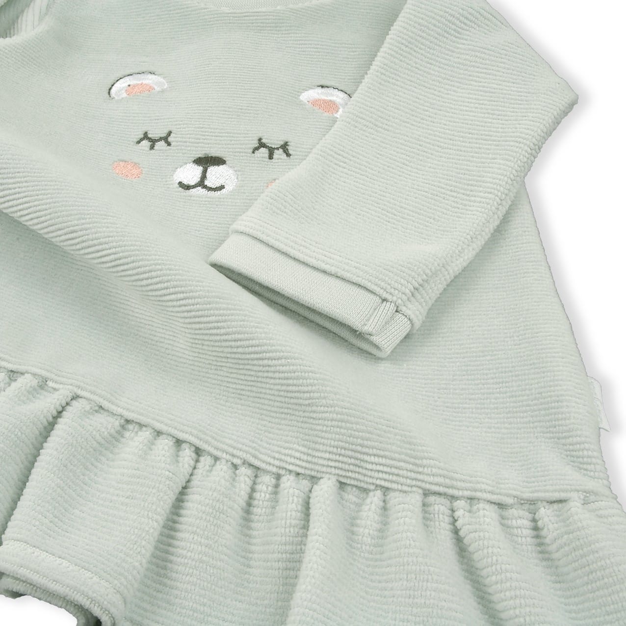 Vestido terciopelo 100% algodón de color verde menta con osito bordado en el pecho.